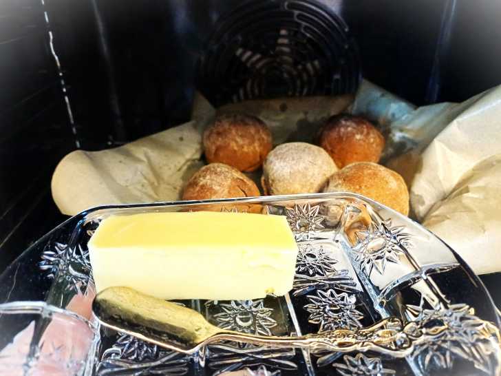 После приготовления, после выключения духовки, смазываем сливочным маслом.