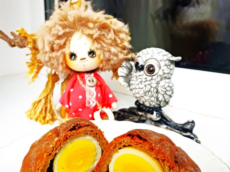 На каждую лепёшку выкладываем по яйцу и, аккуратно, растягивая тесто пальцами, начинаем их как бы заворачивать.