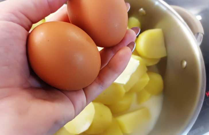 С картофеля сливаем почти всю воду, вливаем молоко, добавляем сливочное масло, перчим.