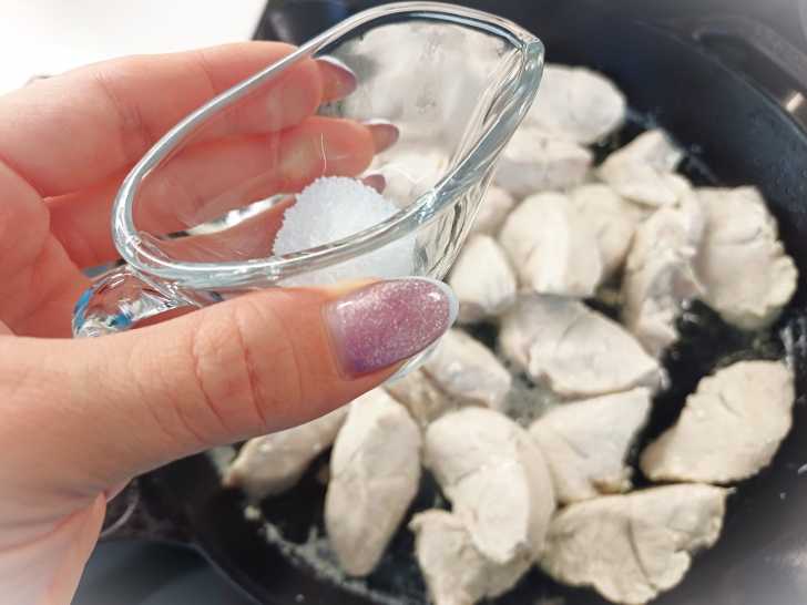 Всыпаем лимонную кислоту в мясо, перемешиваем и тушим ещё 20 минут.