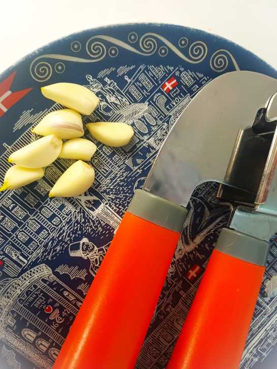 По истечению 50 минут добавляем в суп истолчённый чеснок. Лапшу из холодильника можно достать