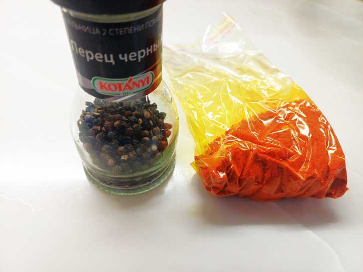 Перчим и всыпаем любимую специю. Снова перемешиваем.