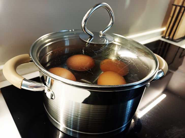 Отвариваем яйца (минуты 4), остужаем и чистим.