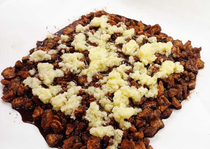 Вливаем получившуюся массу в печенье и замешиваем тесто.