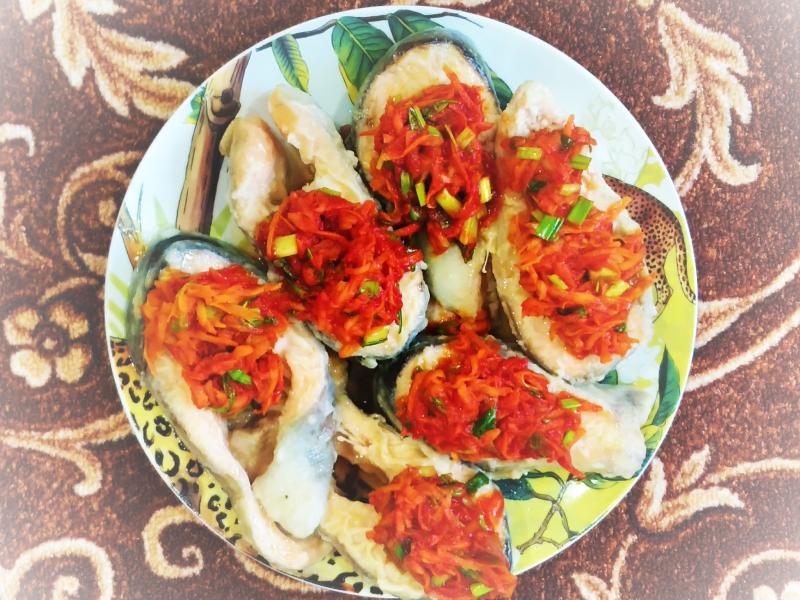Перемешиваем и томим на среднем огне 10 минут. Подаём стейк, а сверху распределяем нашу морковную смесь!