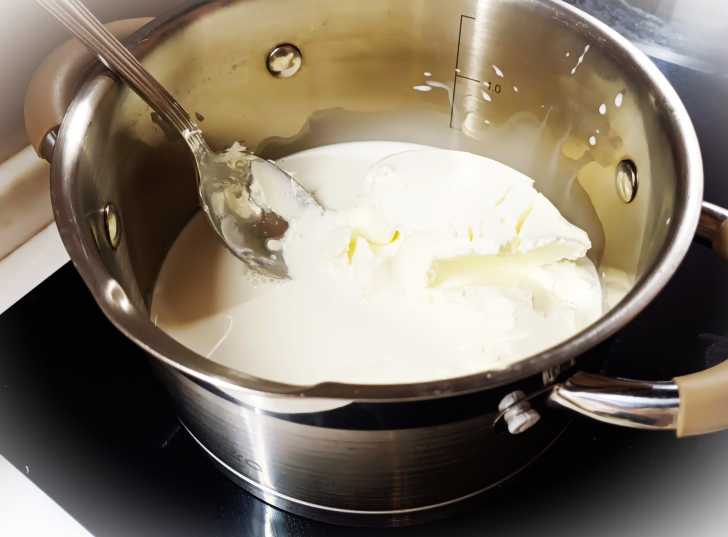 В кастрюльку вливаем сливки, закладываем сливочный сыр, горчицу и на слабом огне доводим (постоянно помешивая) до однородности. Кипятить не нужно!