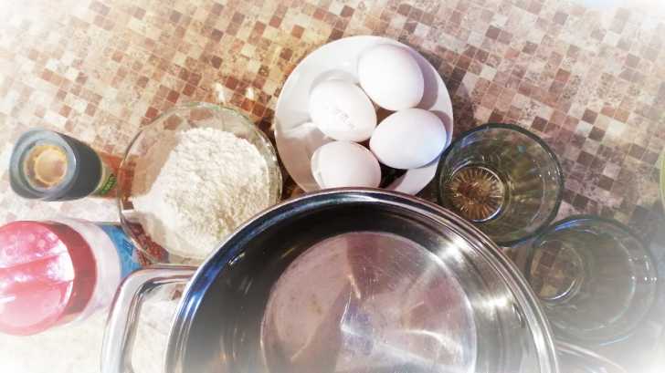 Тщательно смешиваем 2 стакана воды, яйца, муку, соль и перец. По желанию, сюда можно добавить мелко порубленный укроп, он вообще никогда не помешает.