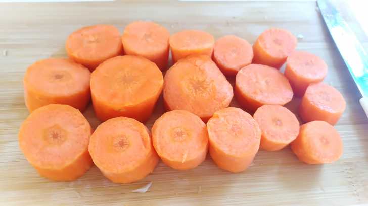 Морковь нарезаем кусками, слегка отвариваем в подсоленной воде и блендерим до однородности.