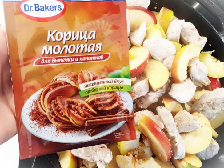 Посыпаем корицей и перемешиваем.