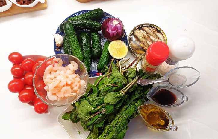 - креветки (готовые и очищенные, можно в маринаде) - 200 г;
