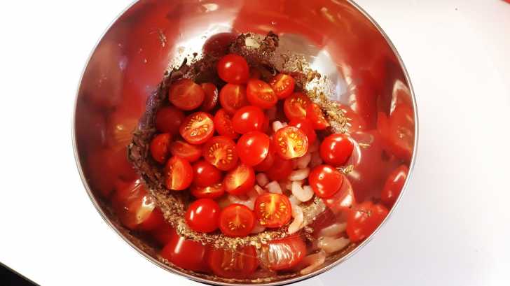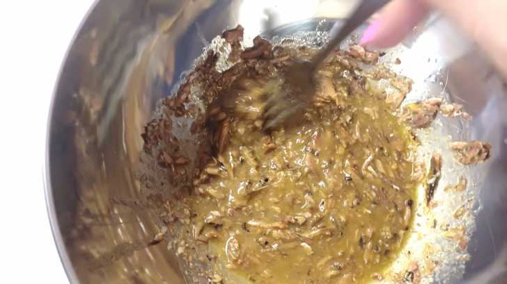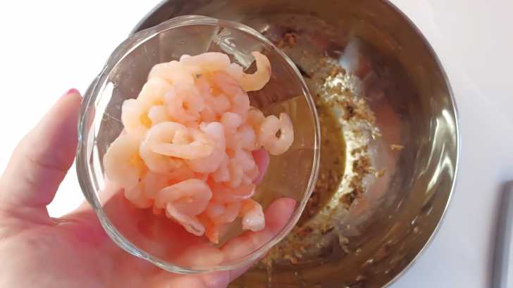 Добавляем в получившуюся рыбную заготовку наши креветки.