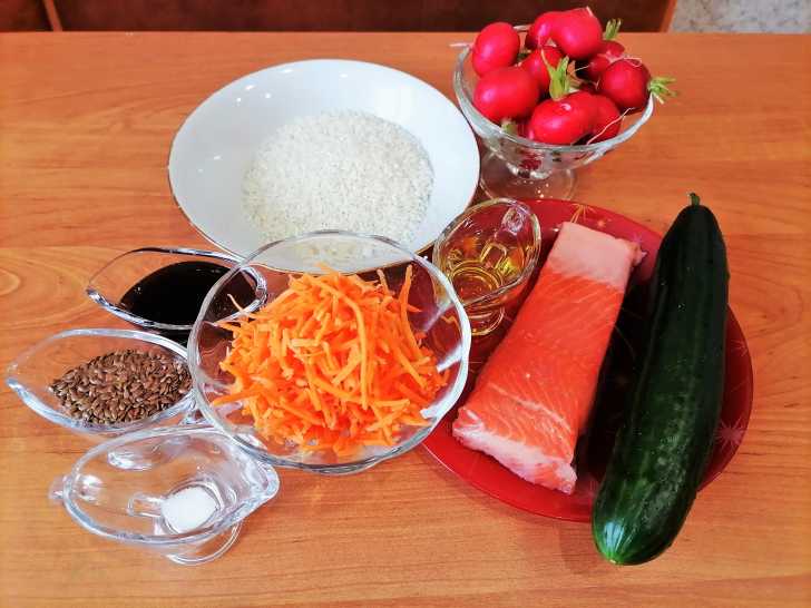 - лосось (готовый) - 1 упаковка (примерно 150 г);
