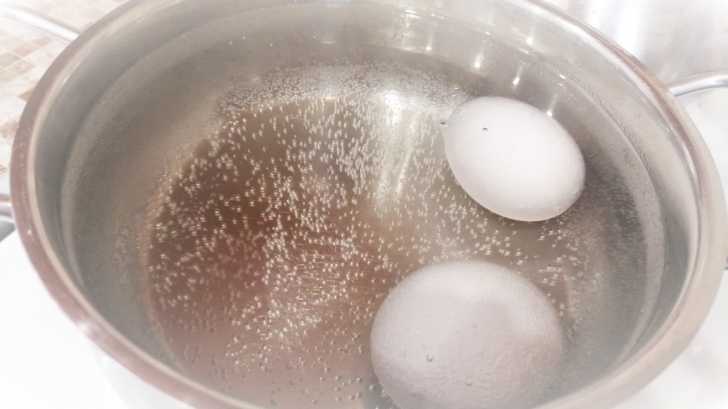 Отвариваем яйца 8 минут, остужаем и чистим.