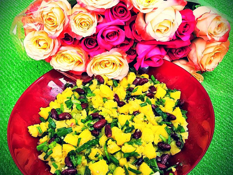 - Смешиваем все ингредиенты, солим, перчим и заправляем растительным маслом.