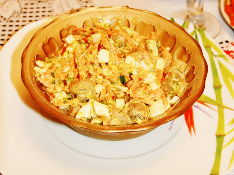 - Смешиваем все ингредиенты, солим и заправляем растительным маслом.