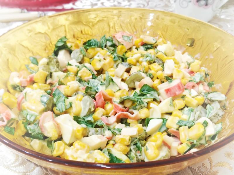 - Смешиваем все ингредиенты и заправляем майонезом.