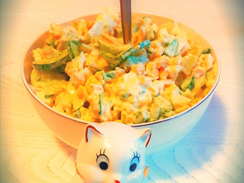 - Смешиваем все ингредиенты, солим и заправляем майонезом.