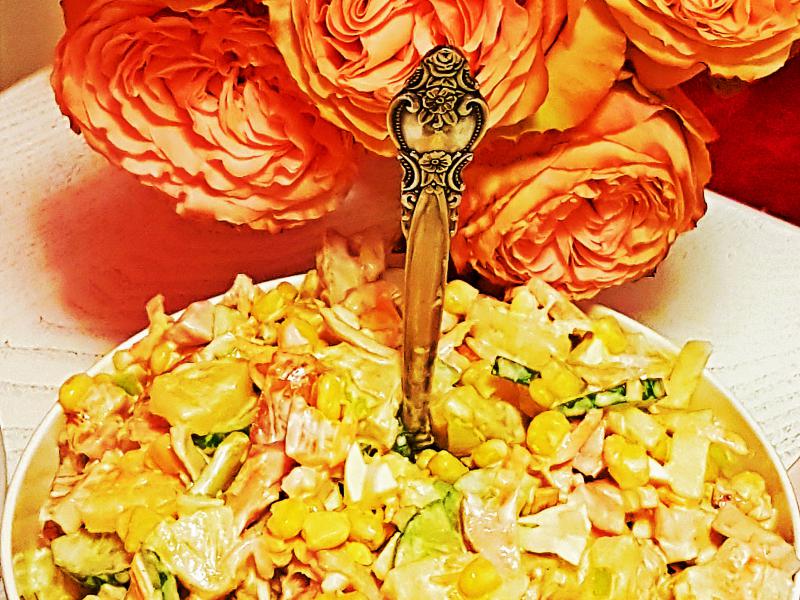 - Смешиваем все ингредиенты, солим и заправляем майонезом.