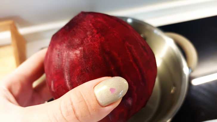 Отвариваем почищенную свеклу целиком в подсоленной воде 30-40 минут.