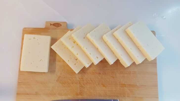 Сыр нарезаем квадратиками, примерно такой же толщины, как и свекла.