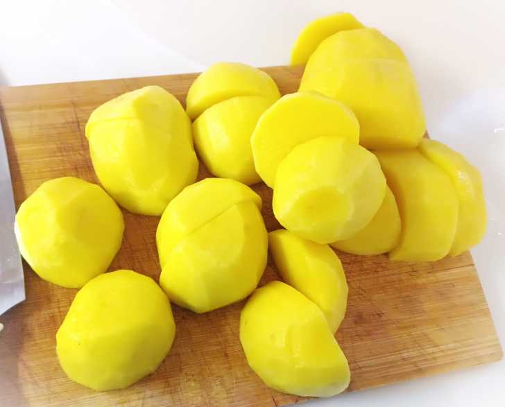 Картофель чистим, нарезаем и отвариваем в подсоленной воде 10 минут.